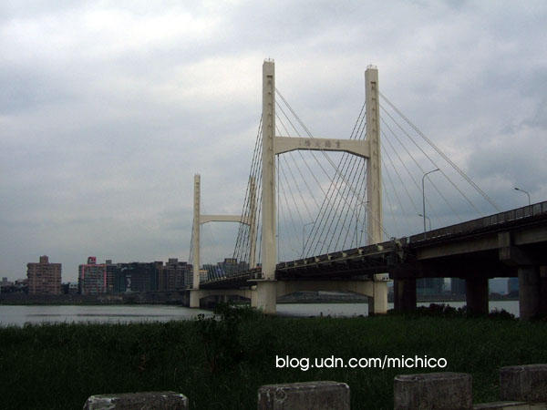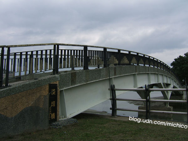停好了我家男孩的〸年小ㄅㄨㄅㄨ,我們就開始走,走到的這座「淡程橋」,忽然想起前年去花蓮,當地有一個公園,那是我們從花蓮火車站步行迴瀾飯店的途中遇見的公園中的吊橋,那時我們還有跟吊橋照相,但是因為這個吊橋的那一方不是我們飯店的方向,所以沒有走過去,後來才聽我家男孩的死黨說,其實相傳走過那座吊橋的情侶都一定會分手,因為曾經有一對情侶在上面然後有發生什麼事情這樣。我們當時聽完都覺得好險沒有走上去(也許當時才交往一年所以會很在意這件事情),所以現在看見有橋,都會想起那個故事,究竟走上去會不會怎樣。不過這座橋我們有走,還在上面跳來跳去拍很白痴的照片。