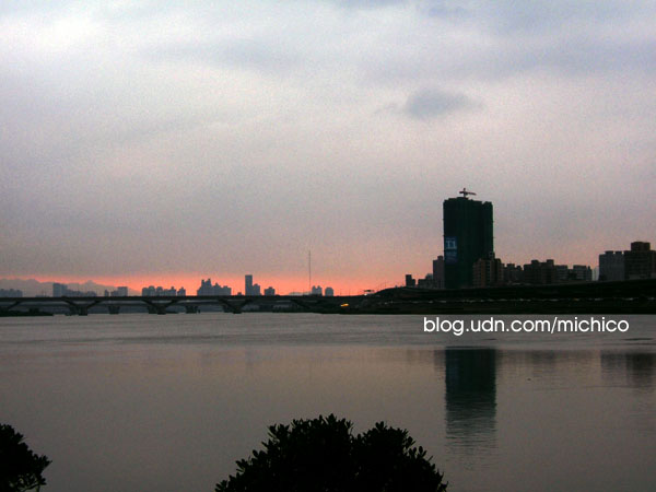 我們騎啊騎的,就已經騎到社子島了。在這邊留影,因為得騎回去,已經接近五點了,她們租車的地方是五點半關門,忽然覺得超級開心。已經好久沒有騎車了結果可以這樣痛快的騎一個小時。還真的要謝謝我家男孩的體貼囉。雖然我是不會人擠人到這邊看煙火,不過可以愜意的騎車也是漸令人感動的事情。